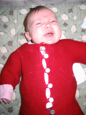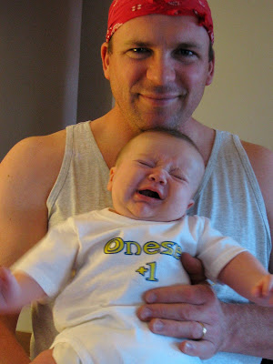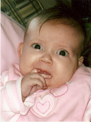 My sixth folder is labeled "Around the House- Spring 2006" and the sixth picture in it (taken on May 28, or so says my computer) is this:My husband holding a crying Magic Boy, who was almost exactly three months old at the time. Coincidentally, Happy Girl is almost exactly three months old right now, so I figured I'd post a picture of her crying, too, just so you could see how much they look alike.