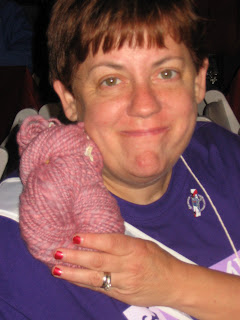 Okay, so last year when I was getting ready for the American Cancer Society's Relay for Life, I did a big elaborate post about why I Relay AND I had a contest featuring hand-spun, hand-dyed yarn. This year, in light of the facts that a) I had a baby just a few months ago and b) I never actually announced the winner of the contest (it was Jen's mom's friend, by the way), I figured I'd just put up some nifty links in the side bar and tell anyone who's willing (and able- I know it's a tough year) to donate something that I really do appreciate your efforts.